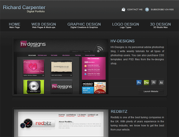 Richard-Carpenter.co.uk http://www.hv-designs.co.uk/2009/02/16/richard-carpentercouk/ http://www.hv-designs.co.uk/2009/02/16/richard-carpentercouk/#comments Mon, 16 Feb 2009 19:18:36 +0000 Richard Carpenter http://hv-designs.co.uk/?p=914 Good evening everyone, this past couple of days ive been sorting out a new design for my portfolio. I’ve had loads of e-mails asking if i have one.